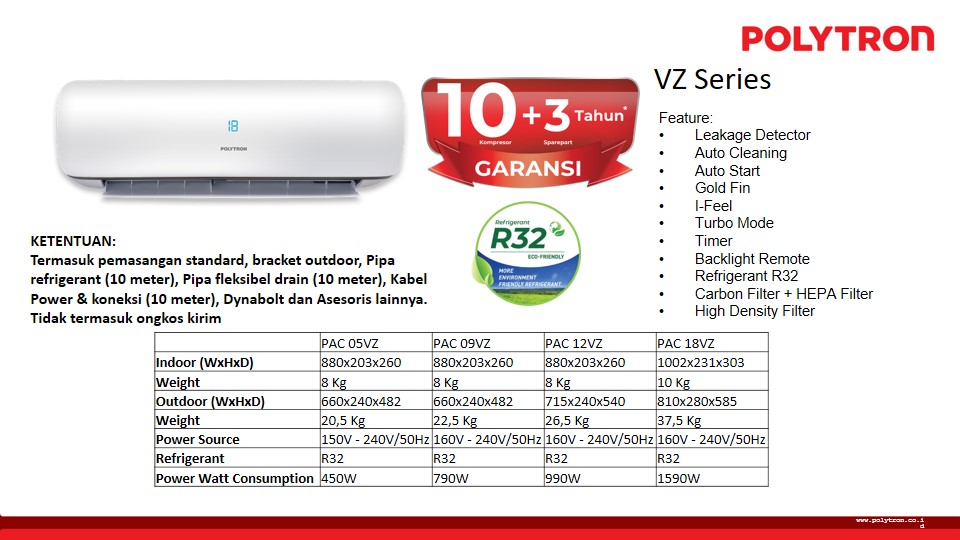 POLYTRON AIR CONDITIONER 1,0PK NEUVA PRO PAC 09VZ